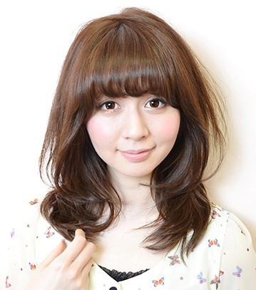 蓬松的齐刘海搭配内扣式与简单的烫发技巧,马上就能减龄中修长脸型