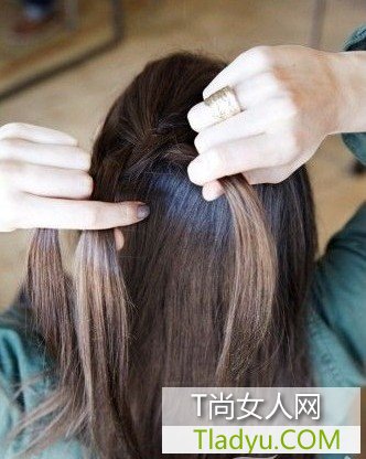 编蜈蚣辫的时候,每次挑起左侧的一小缕发丝加入正在编的发辫中。