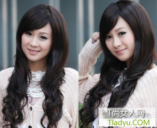 这款长发烫发发型是2011最新非主流发型之一,这款长发发型打造出来的是女性妩媚性感的大波浪卷发,斜刘海将女生的脸型无意间的拉长了,适合脸型较短的女生来尝试打造。从发干处开始的柔和妩媚大卷随意的放在肩膀上,无辜大眼妆和漂亮的发饰衬托下,两眼间流不尽的娇媚。