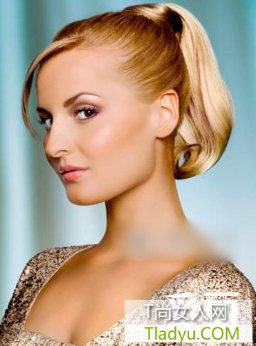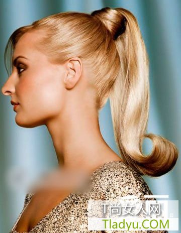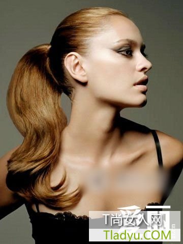 大波浪流线造型搭配简洁的无刘海,很华丽很时尚!用猪鬃梳将所有头发向后梳理并扎成马尾。如果你是直发,记得利用大波浪棒和热风将发尾做出大波浪的卷曲效果,让马尾显得更加丰富动感。这款发型更适合挑染后的头发,会更有层次感,更具有熟女的妩媚!