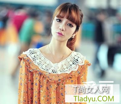 优雅马尾发型,公主式的头发扎发,显成熟女人的优雅气质,圆圆的刘海则为造型注入温婉可爱,卖萌又成熟。