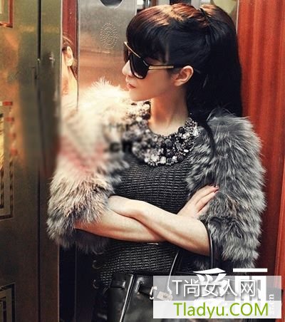 酷酷的时尚马尾,夜店、街拍皆合适,厚厚的立体刘海加墨镜,显得非常帅气,直直马尾束,乌亮黑色头发,用皮草烘托,更显潮流和个性。
