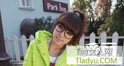 活力十足的可爱女生马尾,圆形的厚刘海,大大的黑框眼镜,又萌又可爱,头顶扎发竖起扎为一条,俏皮活泼的萝莉少女形象,青春减龄。