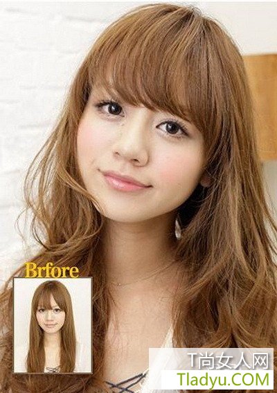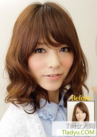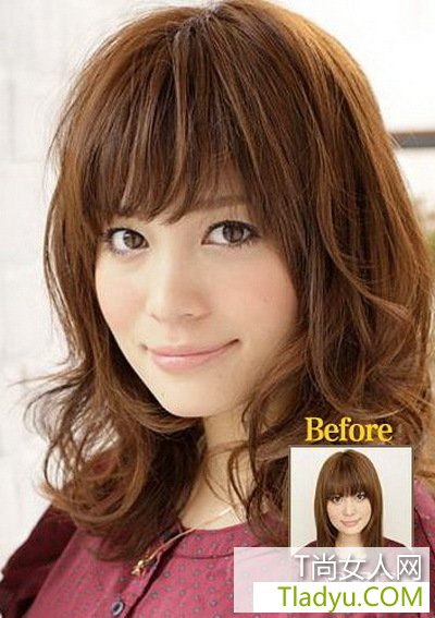 清甜小美女最爱这款中长发啦!有厚度感的齐刘海,充满温婉的甜美感,发尾进行空气感波浪的卷曲处理,使秀发既有空气感又不会沉闷。