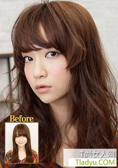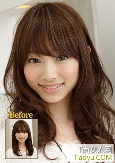 层次不明显的直发最适宜打造蓬松浪漫的长卷发啦。原本有些厚重的直发经过卷曲、吹蓬、整理之后,顿时变得华丽起来,甜美可人、又爱浪漫的小公主就要选择这一款发型!