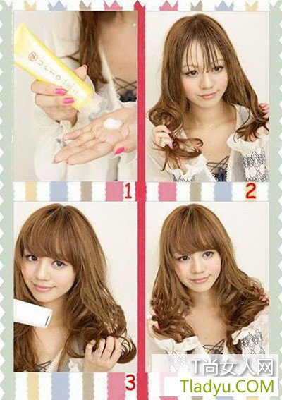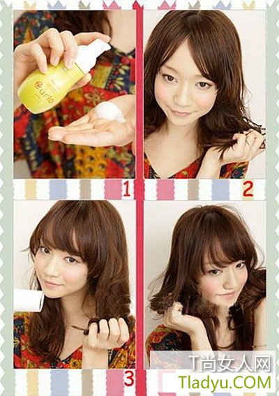 Step 4:将其以沾的方式轻轻的抹在发尾,使发梢更加卷曲、柔顺。