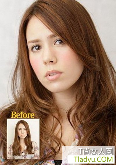 这款侧分长发较为成熟,充满浓浓女人味!这款长发比前面的两款更易打理哦~模特本身的发尾本已微微烫卷,呈现波浪状,只需用造型品打理出自然蓬松的感觉即可。脸侧的长刘海和微微卷曲的发尾使这款发型更加富有女人味。