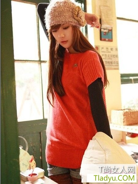 喜欢单色的针织衫,同样也能穿出特色,这款两件套针织衫有种甜美又休闲的感觉,黑色打底长袖与西瓜红短袖套穿,色彩分明令人印象深刻。