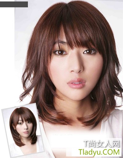 齐肩发型改变一下立即大不同,直直的发丝,轻盈的蓬松造型效果,深棕色的头发颜色,靓丽动感,小脸效果一流。