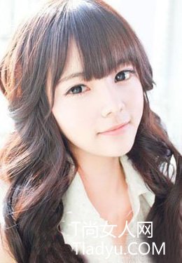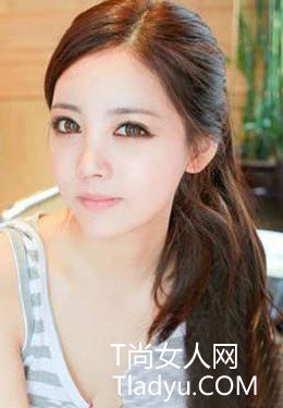 三七分的刘海露出女生完美鹅蛋脸,清秀的眉目无形的让这款长发发型扎发增加了一分清纯可爱的气质。这款发型在打理方面没有过多的技巧,只要你有一把厚实的长发,然后稍稍的用发棒将发尾处理扎起来就会有这样的效果了。