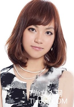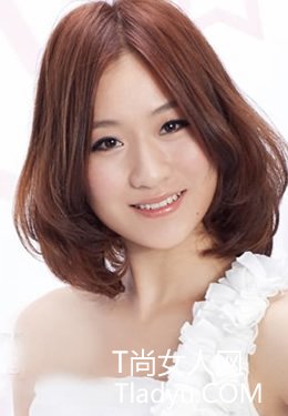 短直发梨花头,内扣的设计显动感优雅,眉上的圆形弧度刘海虽然不能修饰大部分的脸型,但还是可以为长方脸起到收敛的作用,栗色的染发更天优雅女人味。