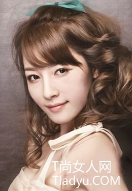 蓬松的日式大卷梨花,利用淡绿色蝴蝶结做发饰,更加的清新淑女。