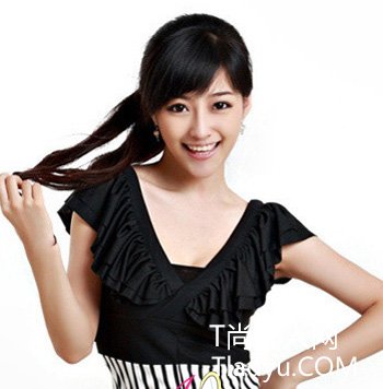 青年时期活泼的马尾扎发朝气流露,斜刘海微倾的弧度勾勒出好看的脸部大概轮廓线条,非常商议喜欢的OL发式。