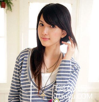 斜刘海随心图一边儿摆,长直发侧放在单肩,脸颊余留的几缕细碎发丝展出出女性的妖艳,纯正美好而亮丽。