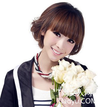 蓬松感的盘发彰显出女性的优雅韵致,刘海显示出整洁的明眸,突显精巧小脸,温婉秀气的OL发式。