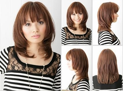 头发长度刚好到肩膀,自然不造作的露出你性感的脖子。蓬松齐刘海充满活力动感,最适合性噶活泼的甜美女孩。