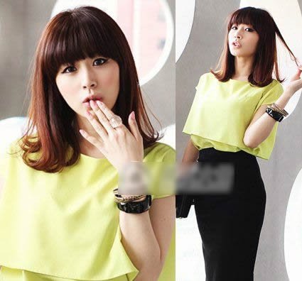 不要以为齐刘海在办公室一定会显得幼稚,其实,用它来搭配简约线条的反翘发尾中长直发,能达到很好的平衡。蓬松的顶发拉长脸部线条,眉毛以下2cm的齐刘海进一步修饰脸型,并且让你更显娇俏和年轻。