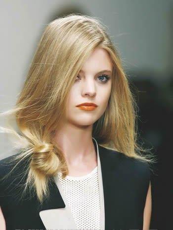 将头发放到右侧面打结,这样的方法更适合于运动的时候,给人一种充满活力,俏皮的感觉。