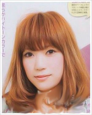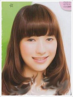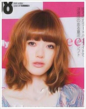 平整的齐刘海,及肩的中,内弯的发尾是亮点,展现出乖乖女的可爱气质!