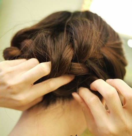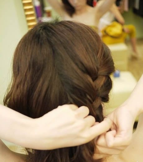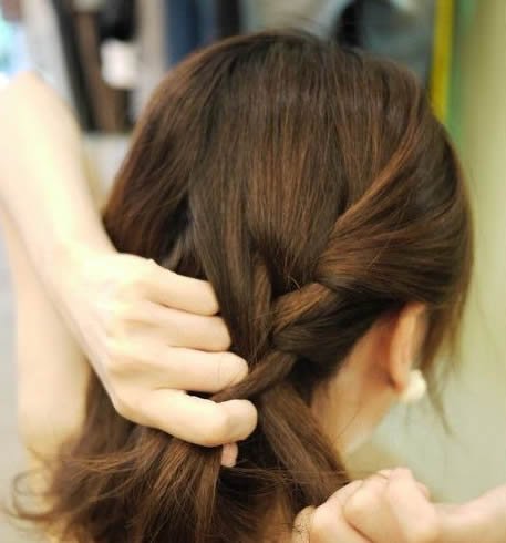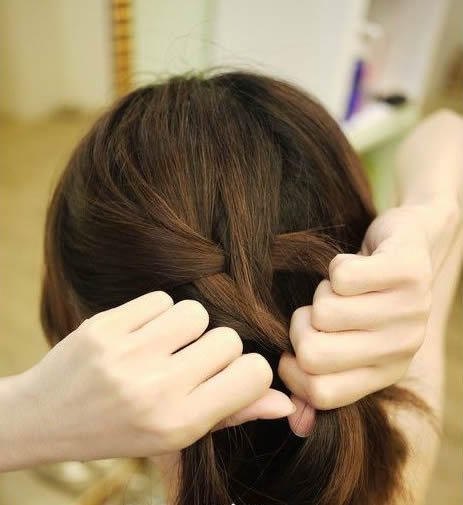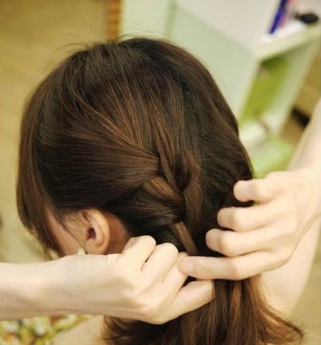 顺着编下来。再一点一点加入头发,不过两边的头发既然都是一样的编发。