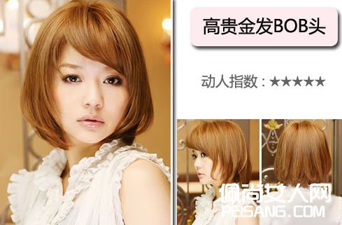 动人点评:呈八字形的斜刘海,流畅地衔接到眼尾处,让眼神更加迷离动人。发尾的微微内弯,包住下颚骨,遮住了脸颊的肉肉,立马变成小V脸。金黄的发色,让平凡普通的BOB头更显生机勃勃的朝气,还散发浓浓的高贵气质,如一个受宠的小公主般。