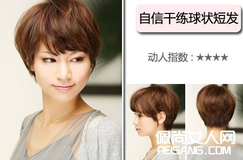 动人点评:高层次的层次修剪,使发型呈现球状的外形,提高了发型,显得有点自然的空气感。脑后也呈现了一个圆润的外形。弧形刘海的修剪与耳鬓的发线自然地衔接上,突显了尖细的下巴,尤其适合瓜子脸的美眉,会衬得脸型更完美。整体发型时尚而干练。